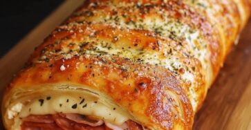 1 tube of pillsbury pizza crust 8 slices of deli ham 10 slices of Genoa salami 12 slices of…